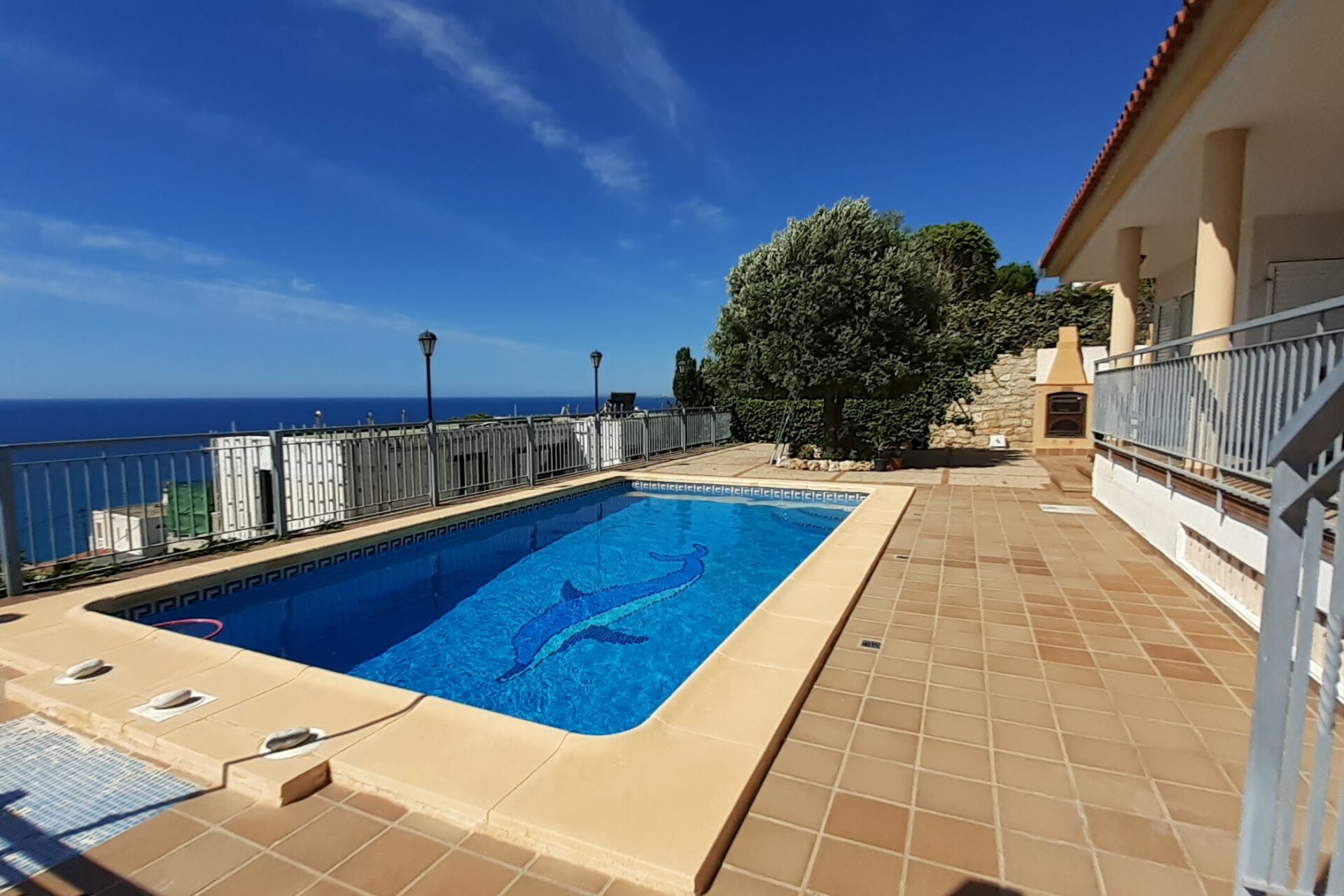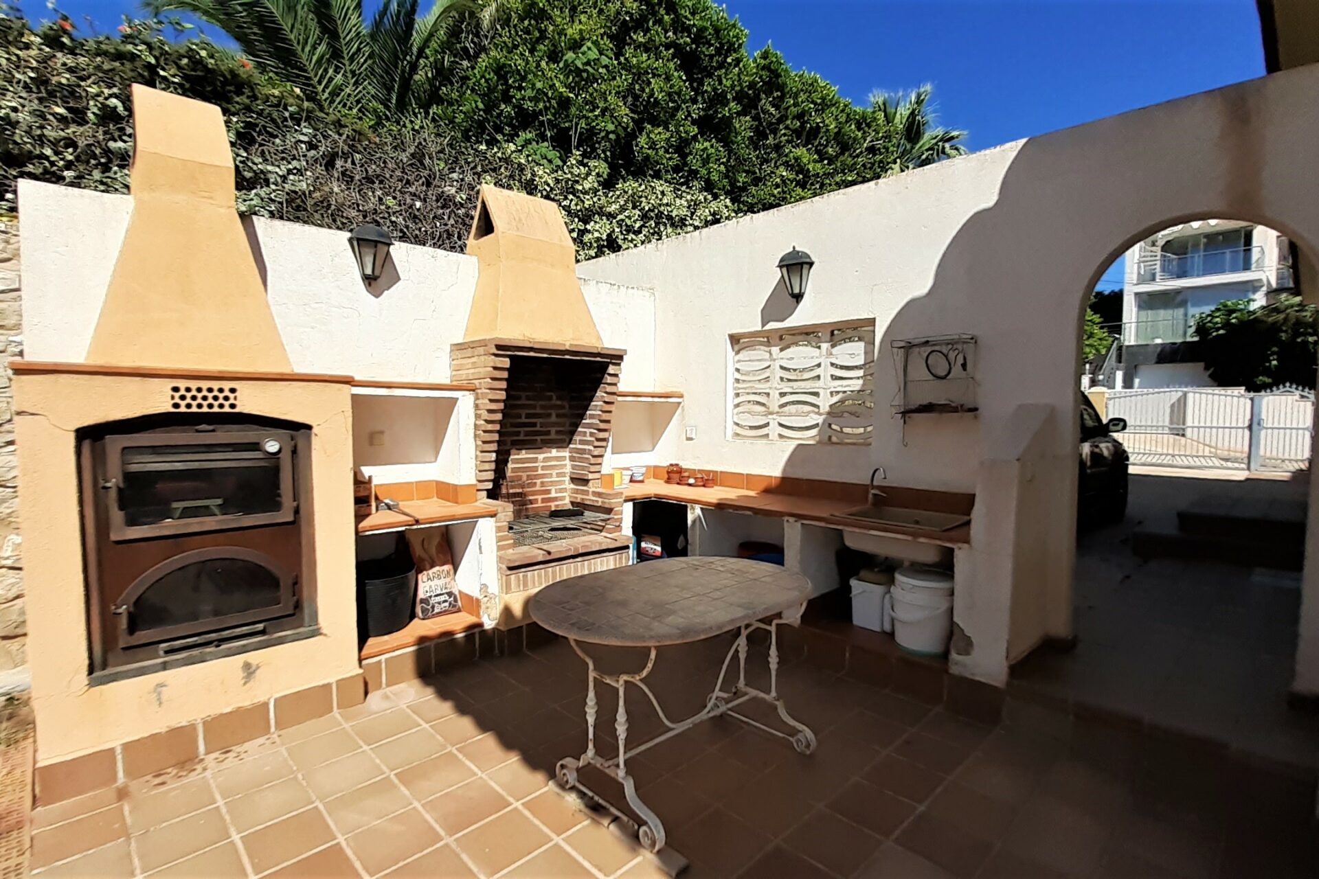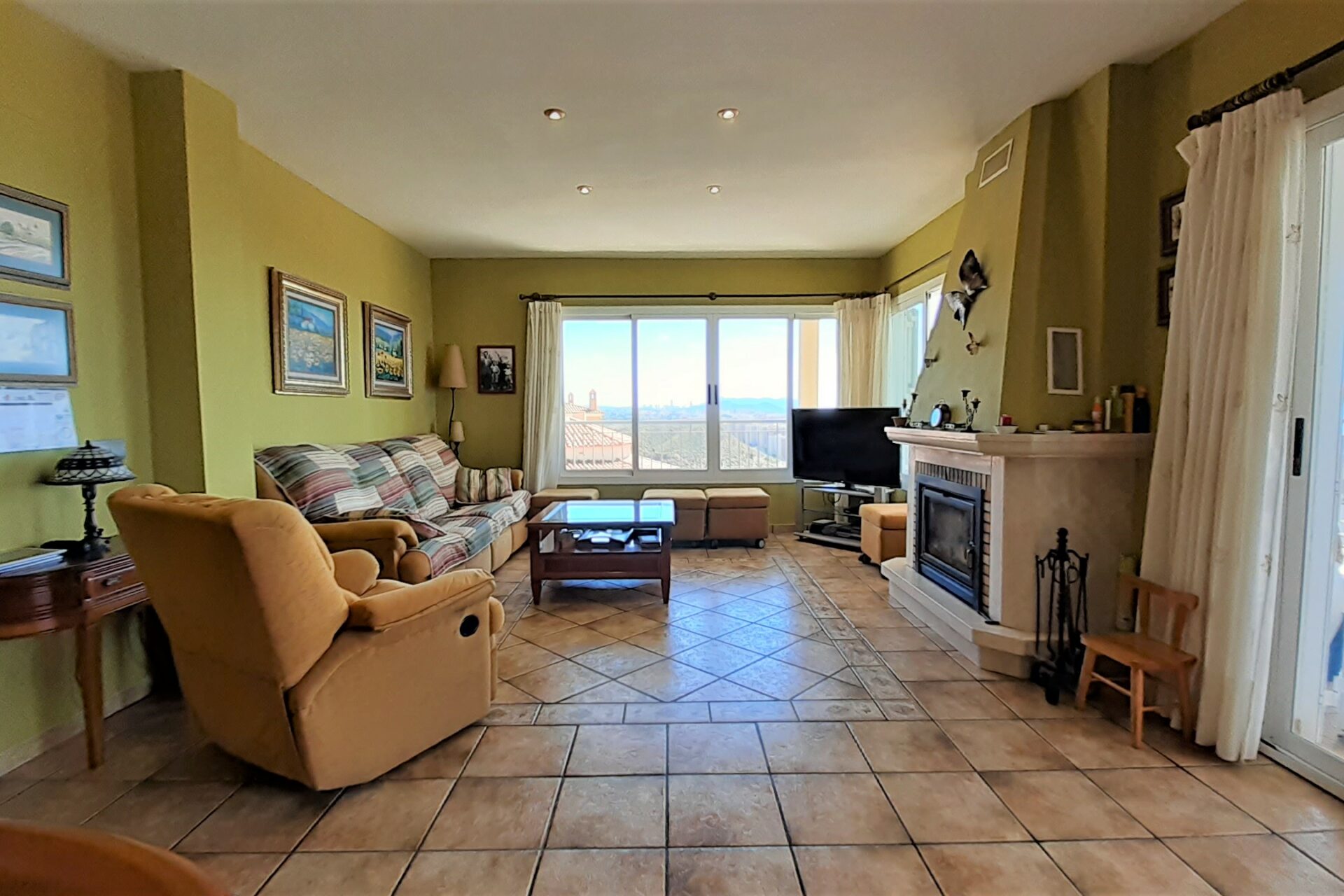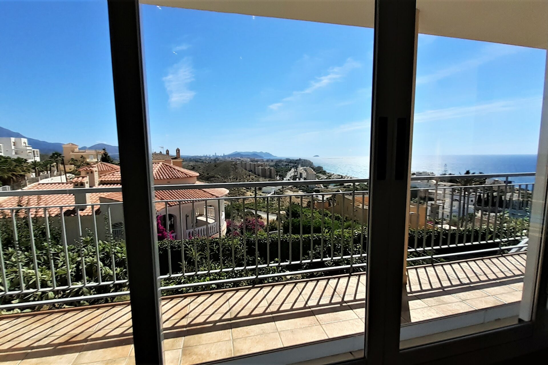 Half an hour from the airport. Walking distance, 750 meters, to the nearest beach. One kilometer to a small shop, a café, bar and a restaurant. 2,5 km to the lovely old town and beach promenade of Villajoyosa. 1,2 km to train station; Alicante-Denia. Presentable entrance hall with double doors leading to the big living room where you have a fireplace cassette and big sliding windows and doors which allows a panoramic sea view and access to the spacious terrace.
