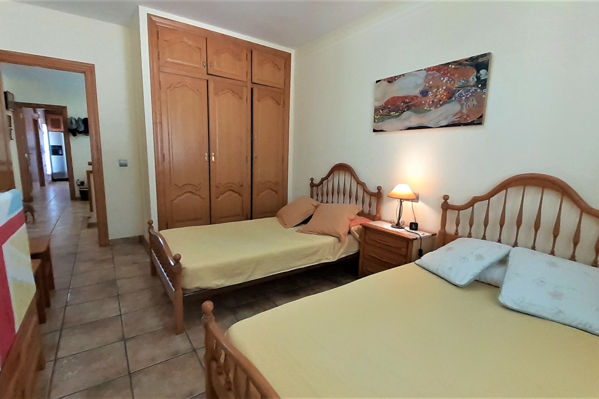 A dining area, also in the living room, has inbuilt vitrine cupboards and bookshelves. The large well-equipped kitchen also provides space for a dining table. There is direct access to the covered terrace from the kitchen. Two nice, seized bedrooms shares a bathroom and further down the aisle is the master bedroom with inbuilt cupboards, bathroom in suite and access to a terrace. The Bathtub has hydro massage.